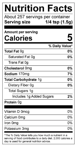 Ingredients: Sugar, salt, spices including paprika, dextrose, dehydrated garlic, celery, silicon dioxide & spice extractives. Gluten free. No MSG.