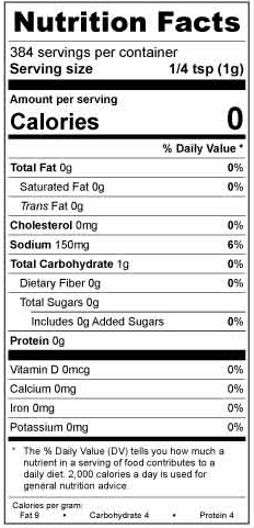 Ingredients: Sea Salt, Turbinado Sugar, Brown Sugar, Chile Peppers & Spices. NO MSG. Naturally Gluten Free.