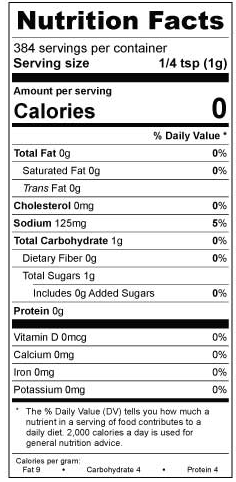 Ingredients: Sea salt, sugar, turbinado sugar, brown sugar, honey powder, chile peppers, spices and silica